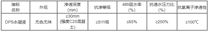 2.技术指标:参照JCT1018-2006 II型DPS《水性渗透型无机防水剂》和DBJ01-54-2001《界面渗透型防水涂料质量检验评定标准》)。
